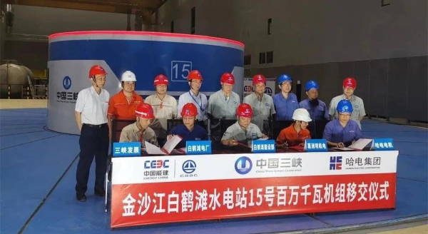 7月17日10时43分,由电机公司研制的白鹤滩水电站右岸15号机组圆满完成72小时试运行试验,顺利移交电厂运行管理。这是白鹤滩水电站继首批2台机组6月28日安全准点投产发电后,首台正式投产发电的100万千瓦水电机组。