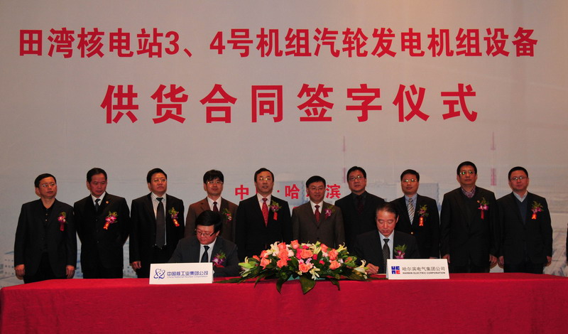 12月27日,哈电股份公司与中核集团中国核电工程有限公司和江苏核电有限公司举行了关于田湾核电3、4号机组常规岛T&G包供货合同的签字仪式。